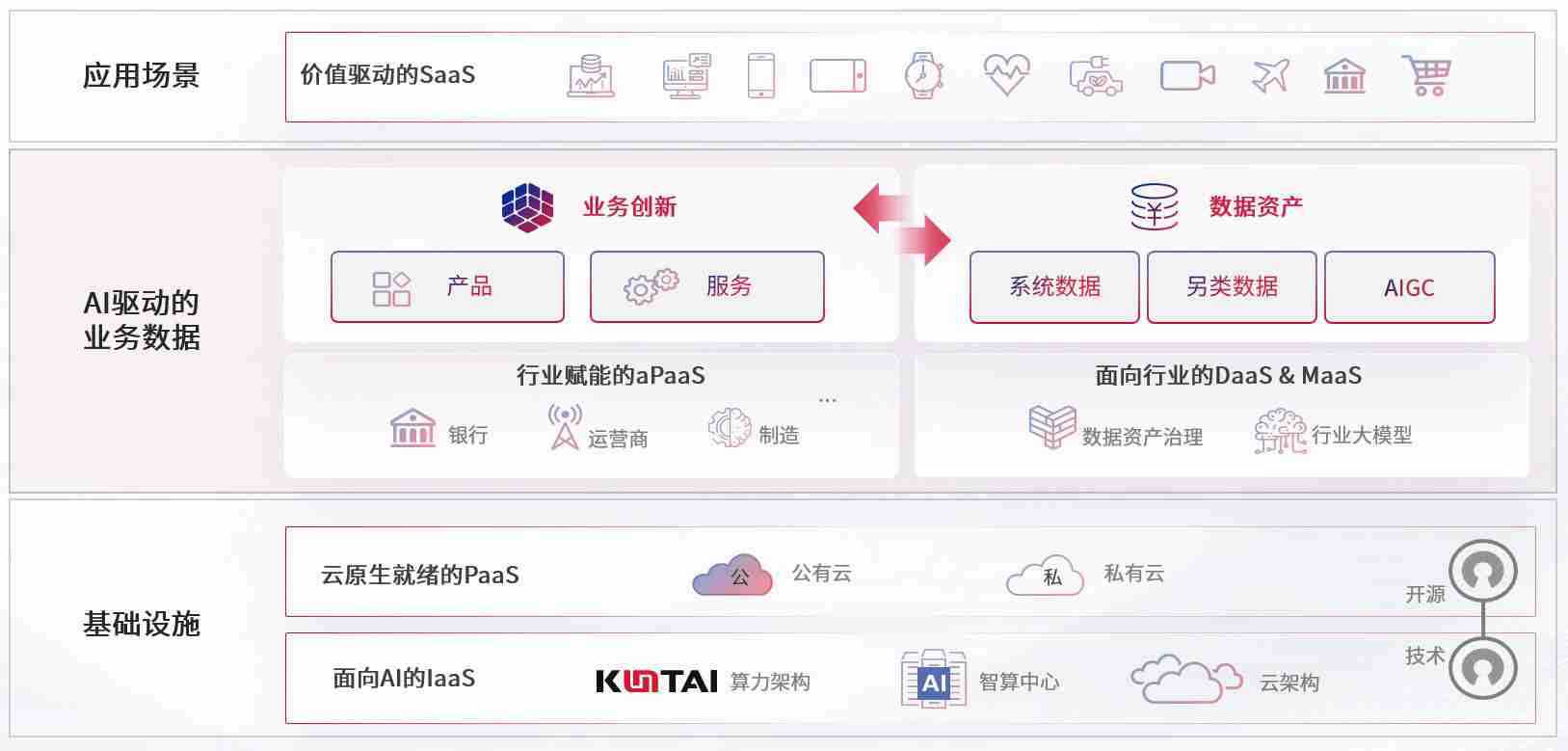 数字时代,,,围绕企业数字化转型的关键要素,,,z6com尊龙数码开创性的提出数云融合战略和技术体系框架,,,着力在云原生、、数字原生、、、、AI原生和信创产业上架构产品和服务能力,,,,为处在不同数字化转型阶段的快消零售、、、汽车、、、、金融、、医疗、、、、政企、、、、教育、、、运营商等行业客户提供泛在的敏捷IT能力和融合的数据驱动能力,,构建跨界融合创新的数字业务场景和新业务模式,,,,助力企业级客户建立面向未来的核心能力和竞争优势,,全面推动社会的数字化、、、、智能化转型升级。。